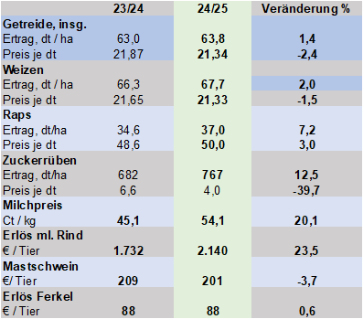 Nachdem bereits im Vorjahr die Erlöse aus Pflanzenproduktion empfindlich zurückgegangen sind, setzte sich dies in 24/25 fort.