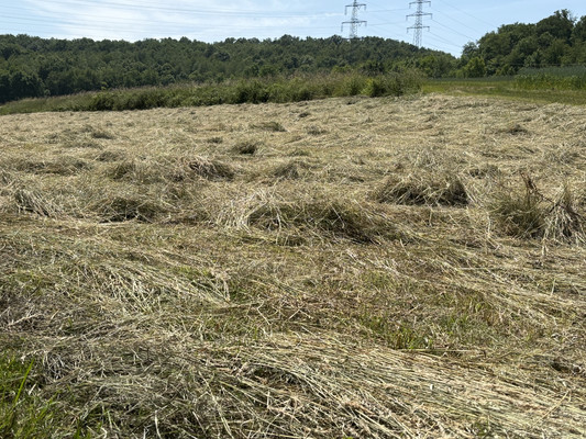- zunehmende Verbuschung und Verunkrautung: Ohne regelmäßige Mahd wächst Grünland schnell zu. Dies führt zu einer Verringerung der Artenvielfalt und kann wertvolle Offenlandbiotope gefährden.