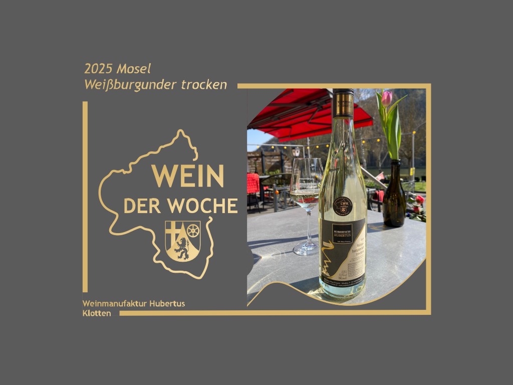 Ein Wein, der den Sommer ins Glas bringt - der 2025 Weißburgunder trocken der Weinmanufaktur Hubertus aus Klotten überzeugt mit Eleganz und feiner Aromatik.