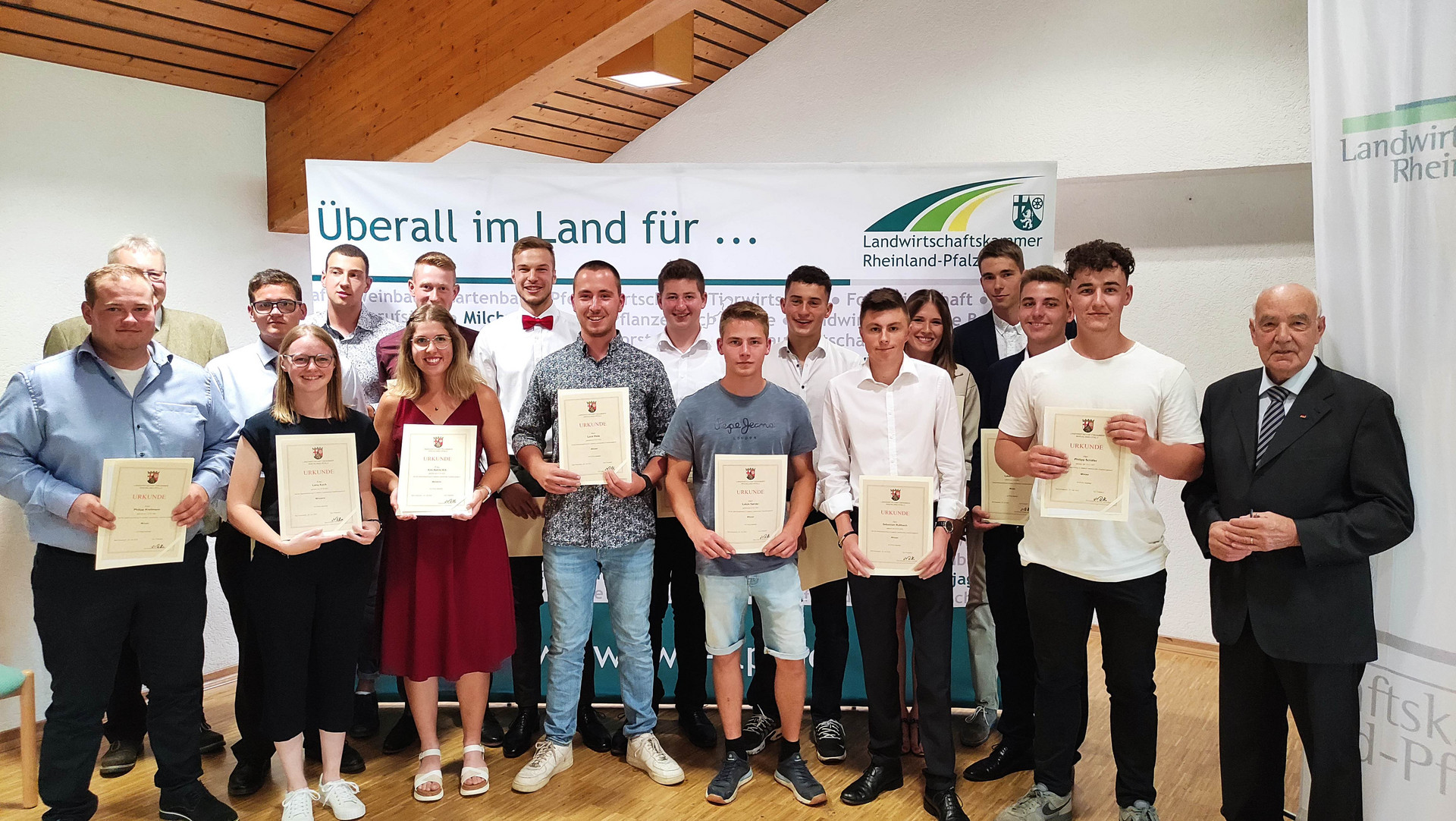 „Sie haben Kenntnisse und Fertigkeiten bewiesen, um erfolgreich in Ihrem Beruf zu arbeiten. Dabei haben Sie zahlreiche Herausforderungen gemeistert – Glückwunsch!“, sagte der Präsident der Landwirtschaftskammer Rheinland-Pfalz, Ökonomierat Norbert Schindler, bei den Zeugnisübergaben. Er dankte gleichzeitig auch den Ausbildern und Lehrkräften, aber auch den Eltern. „Ein grüner Beruf ist nicht nur irgendein Job, sondern der Ausdruck einer Lebenshaltung und eine sinnstiftende Tätigkeit“, befand Präsident Schindler bei den Feiern.