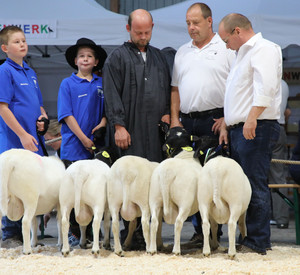 Zuchttiere aus 20 verschiedenen Schafrassen im Wettbewerb und zum Verkauf.