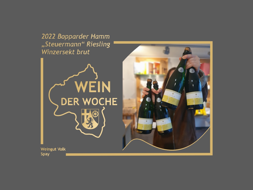 Unser Wein der Woche ist heute ein Sekt – der „2022 Bopparder Hamm „Steuermann“ Riesling Winzersekt brut“ Diese Woche zeigt sich unser „Wein der Woche“ von seiner prickelnden Seite und ist gleichzeitig eine Hommage an den Urgroßvater des Familienweinguts Volk in Spay am Mittelrhein. Dieser war nämlich seinerzeit als Lotse auf dem Rhein tätig und brachte der Familie im Dorf den Spitznamen „Steuermann“ ein.