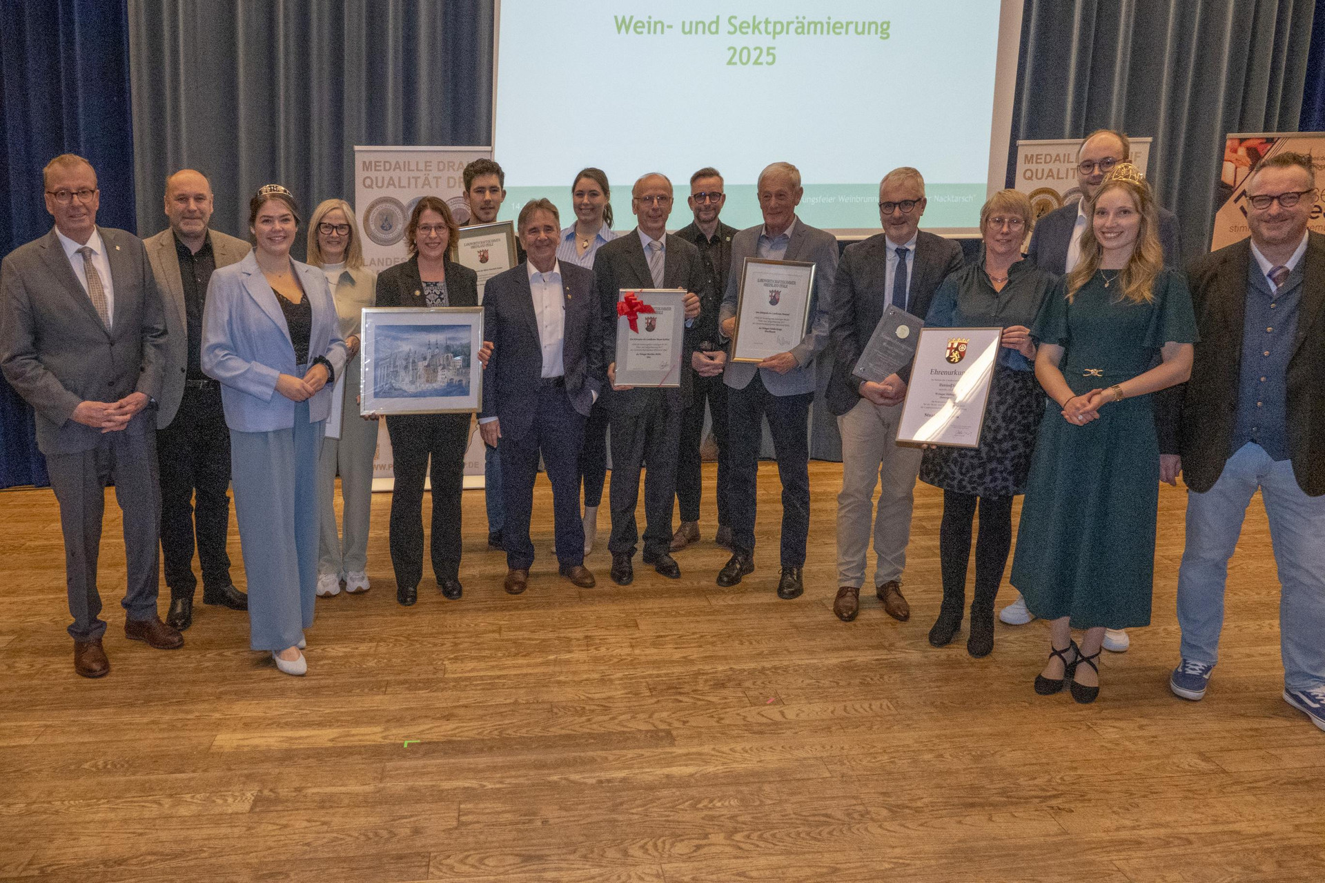 Für besondere Leistungen bei der Wein- und Sektprämierung 2025 der Landwirtschaftskammer Rheinland-Pfalz erhielten Staatsehrenpreise und Ehrenpreise: